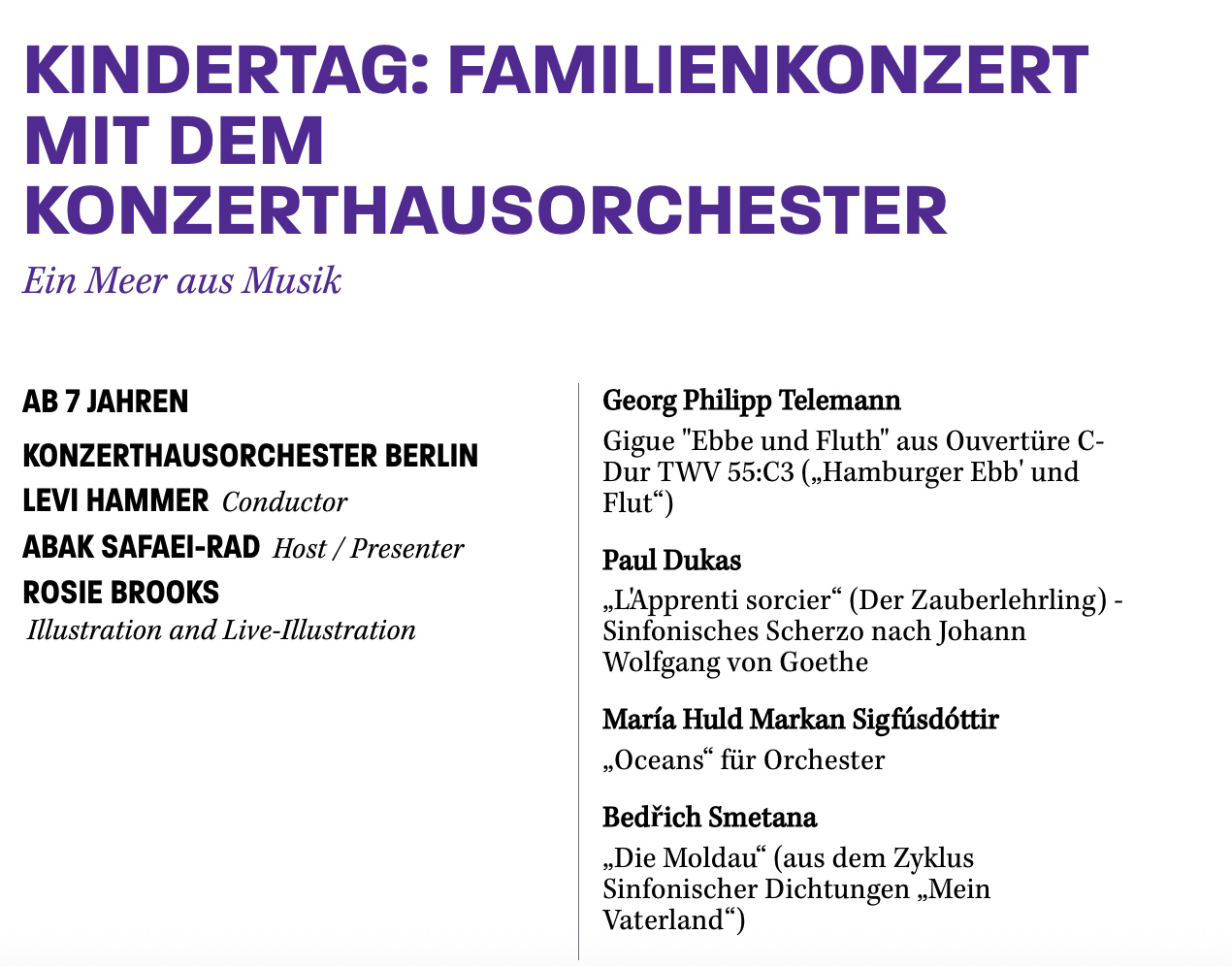 Rosie Brooks created live illustration for Berlin Konzerthaus as part of its Kindertag family programme, drawing in real time during a FamilienKonzert with the Konzerthausorchester in the Großer Saal at Gendarmenmarkt. Responding to the music as it unfolded, she translated the atmosphere of the concert into warm, narrative-led imagery that added a playful visual layer for children and their grown-ups alike. The result was an elegant, immersive experience that supported the concert hall’s family audience engagement and showed how live drawing can help classical music feel vivid, welcoming, and memorable.